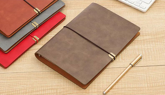 筆記本封皮的材料,有紙面、皮面、布面以及一些特殊材質。其中皮革類因為有耐磨防水的特性,是較為常用的。