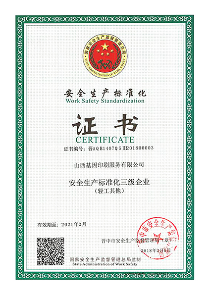 • 安全生產標準化證書