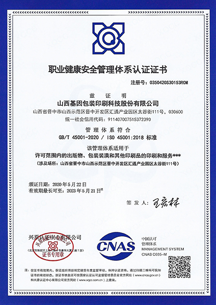 • 職業健康管理體系認證證書